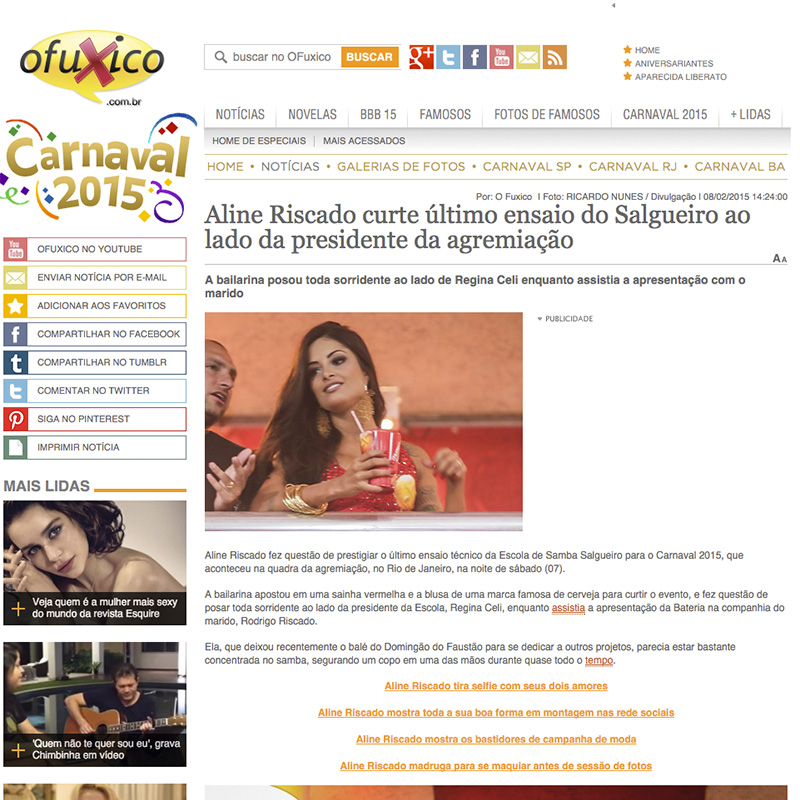 Aline Riscado curte último ensaio do Salgueiro ao lado da presidente da agremiação
